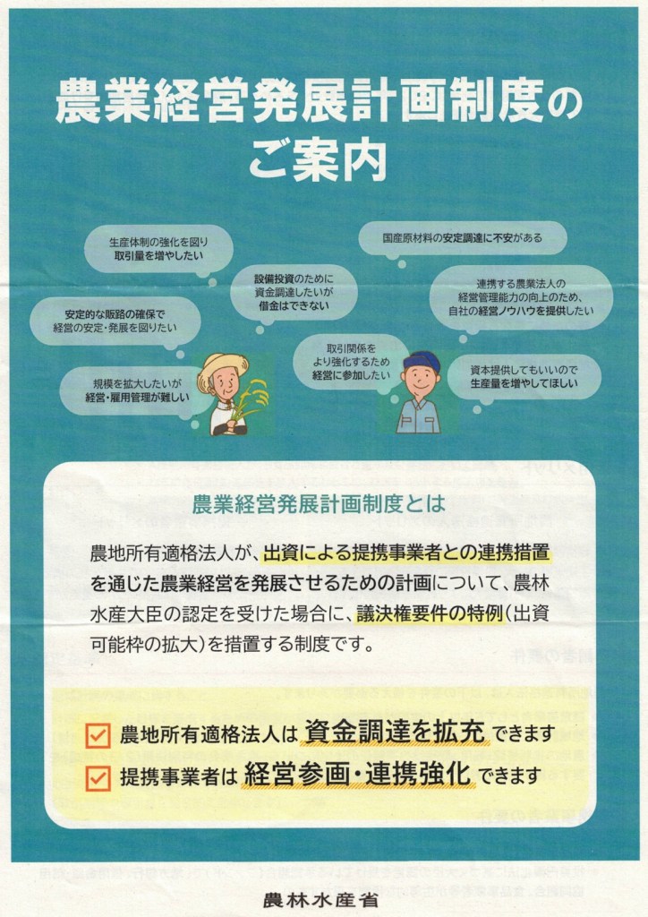 数日前、私のところに農業経営発展計画制度の案内が来ました。
